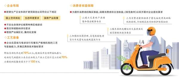 新规聚焦电动自行车行业管理、规范企业生产经营行为,提升电动自行车生产、销售、使用、充换电、报废回收等各环节安全水平。据悉,《规范条件》从企业布局、工艺装备、产品质量与管理、消费者权益保障等七个方面提出要求。