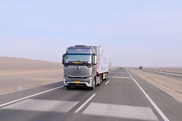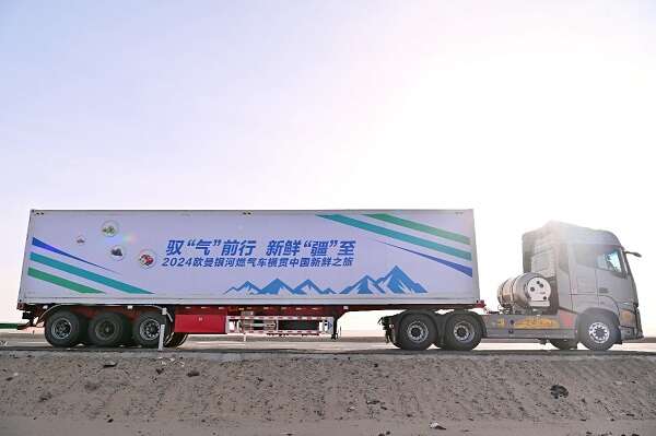 在装载当地货物的欧曼银河燃气车从新疆喀什启动的那一刻,“2024欧曼银河燃气车横贯中国新鲜之旅”这场中国重卡行业首次最长里程极限工况挑战就正式拉开序幕。前一天路程主要是广袤无人区之中的沙漠公路,在经历了戈壁风沙、大漠温差的洗礼之后,5月8日,欧曼银河燃气车从新疆若羌向着青海久治出发。