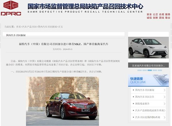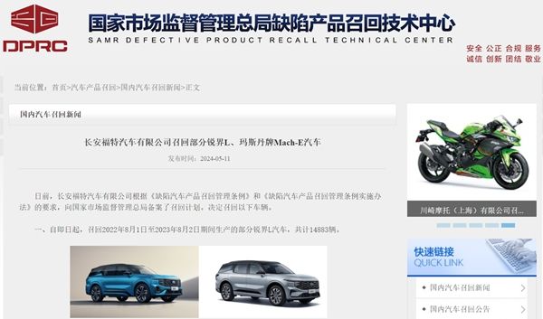 具体来看,福特系的福特和林肯2品牌合计召回26454辆,占比93.95%。其中,福特召回15281辆锐界L和Mach-E电动汽车。