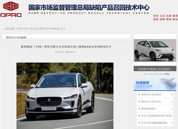捷豹路虎则将自公告日期,召回113辆进口2019款捷豹I-PACE纯电汽车。召回原因是车辆的动力电池由于制造原因,可能造成电芯内部短路,引发热过载。极端情况下可能导致动力电池起火。