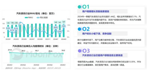 根据中国汽车工业协会的最新统计,2024年第一季度,中国的汽车生产和销售量分别达到660.6万辆和672万辆,年增长率分别为6.4%和4.6%,这一成绩创造了自2019年以来的历史新高。强劲的购车需求也进一步推动了汽车资讯行业的发展。