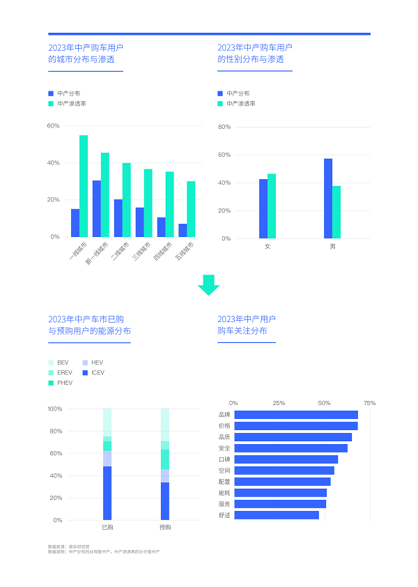 中产购车用户集中大城,且女性凸显,助推中国车市消费电动化与品牌化,助力电动车与强势品牌发展