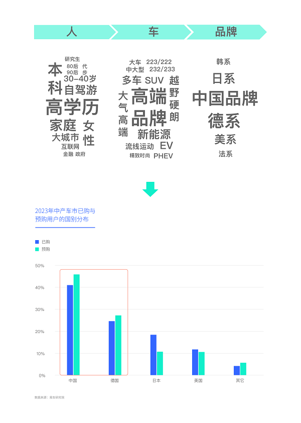 中产购车用户的意向国别愈发聚焦中国品牌和德系,“中德大决战”跃然纸上,日系被进一步边缘化,美系岌岌可危