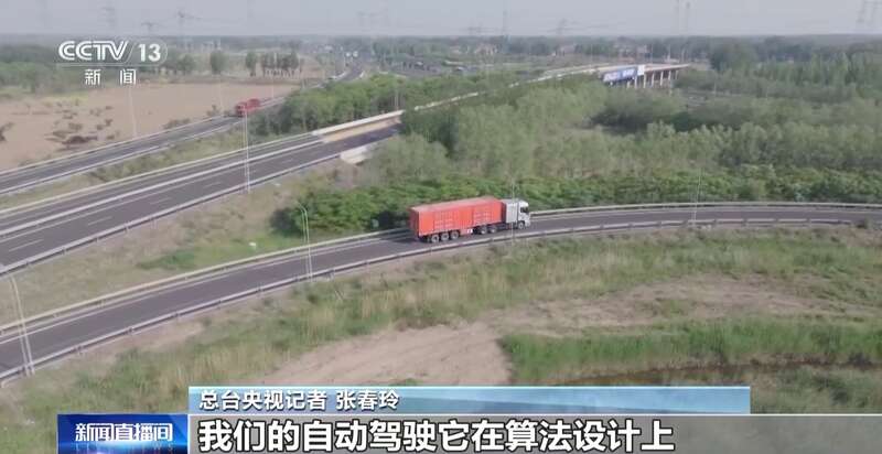 总台央视记者 张春玲:这辆重卡汽车就是氢能L4级自动驾驶重卡汽车。今年上半年,我国正式开放了跨越三个省市的自动驾驶干线物流货运的测试场景,接下来我们就将乘坐自动驾驶的重卡汽车去体验一下它上高速公路的感觉。