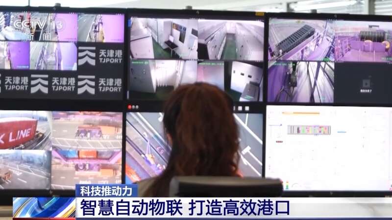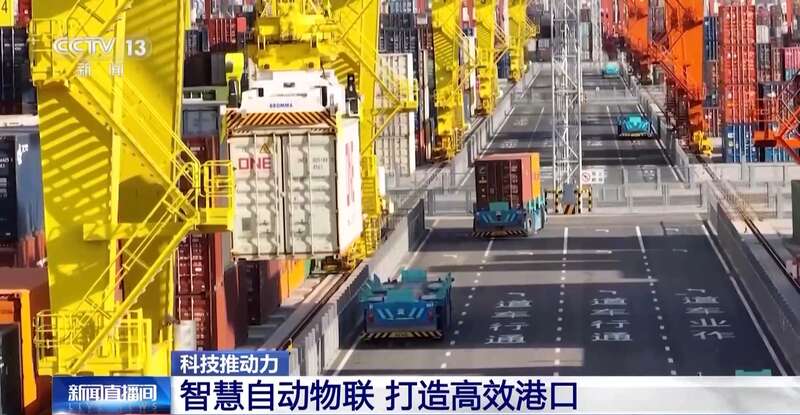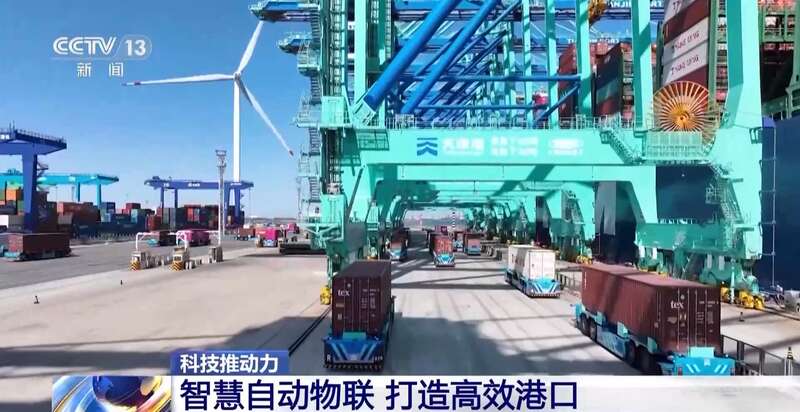 总台央视记者 张春玲:在全球十大港口之一的天津港,有着全球首个全物联网集装箱码头,92台自动驾驶的L4级的小车已经在这里上岗。完成码头里最重要的工作之一——装卸。