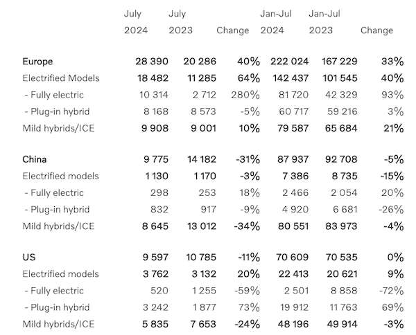 今年1~7月,沃尔沃汽车全球总销量为44.55万辆,同比增加13%。