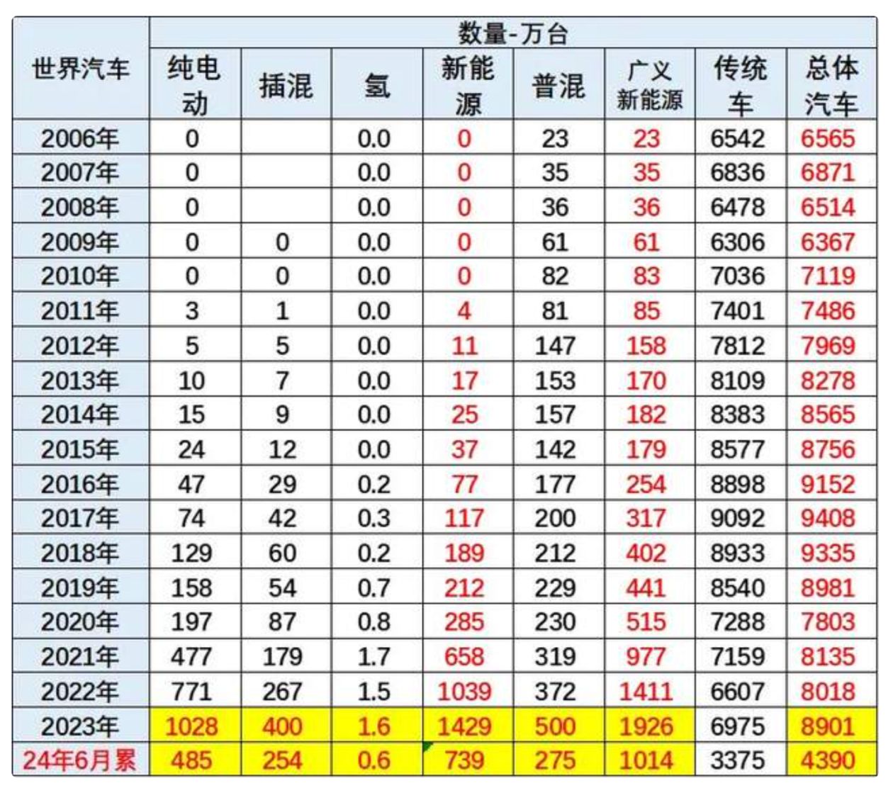 8月5日消息,据乘联会崔东树发布的微信公众号文章显示,随着全球汽车行业向新能源转型的步伐加快,中国新能源车在2024年上半年再次证明了其在全球市场的领先地位。据最新数据显示,2024年1-6月份,全球汽车销量达到4390万台,其中新能源汽车销量为739万台,占总销量的16.8%。中国新能源车在此期间的销量表现尤为突出,占全球新能源车销量的65%。
