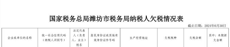 国家税务总局山东省税务局(潍坊)网站近日公布欠税公告决定书(潍税欠公字〔2024〕3号)。