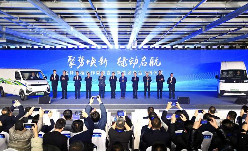 吉运新能源产品下线仪式暨醇氢电动产业发展大会在金杯总装车间举行。主办方供图