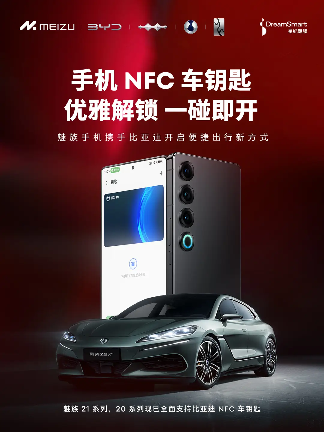 近日,星纪魅族与比亚迪达成合作,星纪魅族旗下多款手机携手比亚迪 DiLink 推出 NFC 车钥匙功能,可实现解闭锁车门及启动车辆等操作,双方共同推进 NFC 车钥匙技术在智能手机与汽车领域的融合应用。