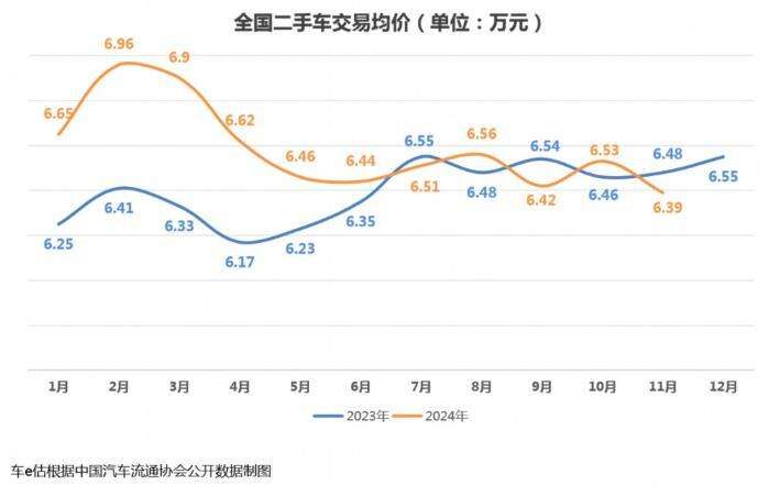 随着今年三季度以旧换新政策的实施,二手车库存有所缩短,但整体来看仍处于较高水平。以2024年11月为例,二手车商的平均库存周期为48天。陆广智表示,临近年底,经销商加大清库力度,采取让利促销措施,以此激发市场活力。同时,新车价格持续下滑,交易价格受到的影响也比较大。