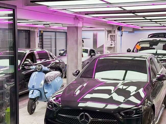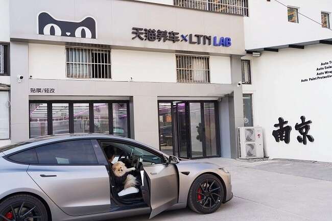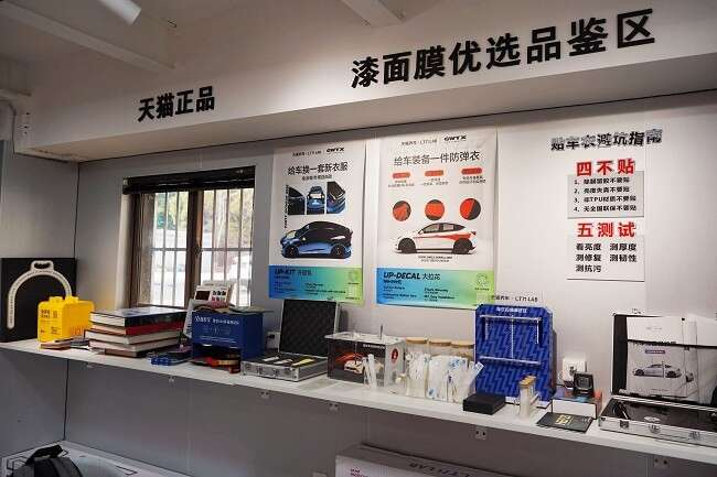 在天猫养车 X LTNLAB南京河西店,消费者进店选购膜品时,店员不仅会做产品介绍,还会用自己的专业知识讲解太阳膜的光谱特性,拿出试用的膜品带着用户直接在阳光下体验。贴膜结束,但服务并没有结束。
