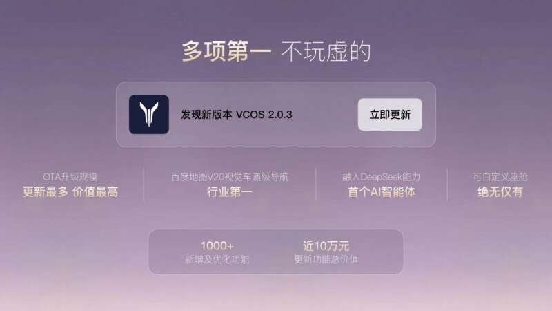 第一最,行业迄今最大规模的OTA升级:新增及优化功能超1000项,涵盖导航、语音、生态、系统桌面、智能体验等多个模块;