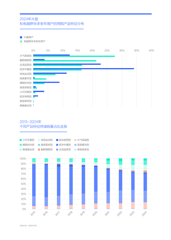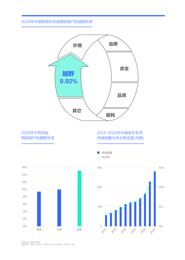 2024年中国车市的越野诉求达9.92%,其中老年诉求最显著,以及老年车市快速壮大,正培育出“新老头乐车市”