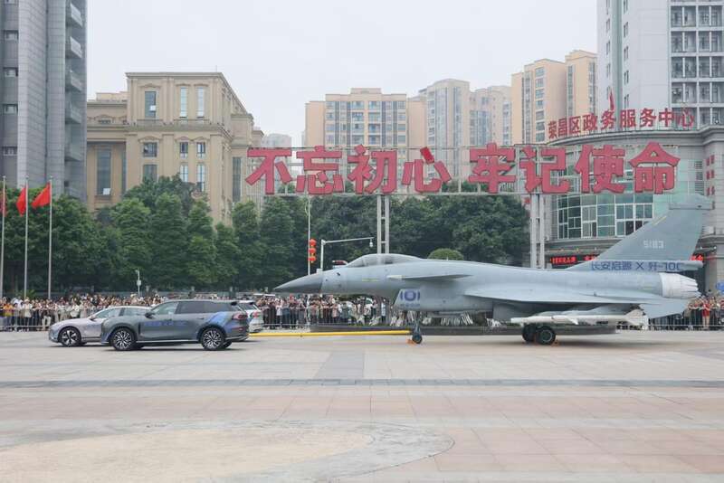 歼10C战斗机荣昌街头巡游创全国首例 长安启源硬核牵引引爆全民关注