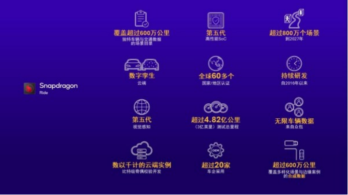 超过20家车企已宣布推出或正在开发基于Snapdragon Ride平台的具备ADAS功能的车型。其中包括宝马集团、通用汽车、雷诺集团、Stellantis集团和大众集团(及其旗下CARIAD)等全球车企,以及北汽集团、北京现代、奇瑞、一汽集团、零跑汽车、上汽通用和上汽大众等多家中国车企。Snapdragon Ride平台将在塑造未来出行方式中扮演关键角色。