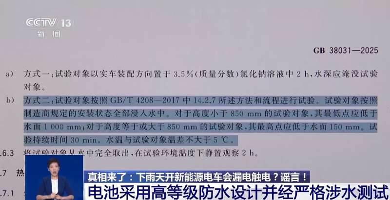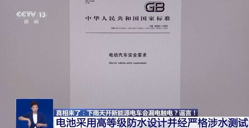 央视网消息:“下雨天不能开新能源电车,会漏电触电”?