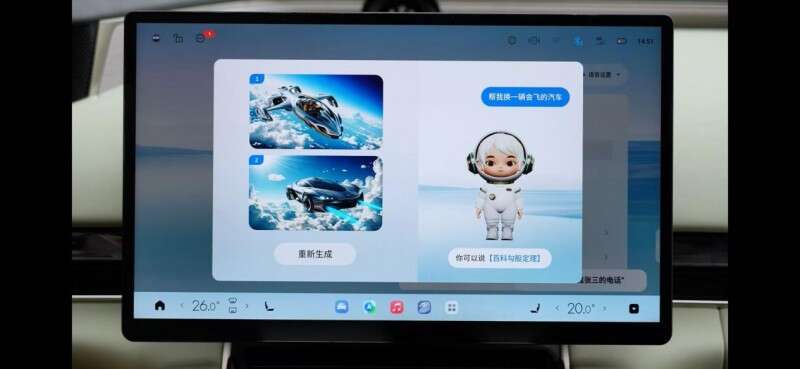 AI创意生成, 新增“文生图”功能正式上线 。用户只需说出创意描述如“生成一幅赛博朋克风格的城市夜景”,系统便能即时创作专属AI艺术图像,并一键设为车机壁纸,座舱个性化与趣味性大幅跃升。