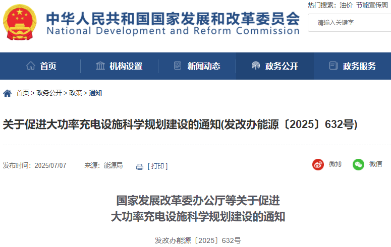 国家发展改革委办公厅等关于促进大功率充电设施科学规划建设的通知