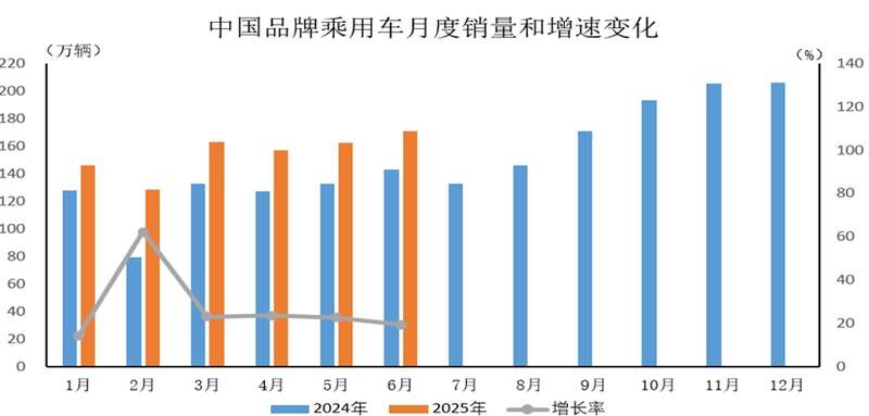 中汽协:上半年中国品牌乘用车销售量同比增长25%