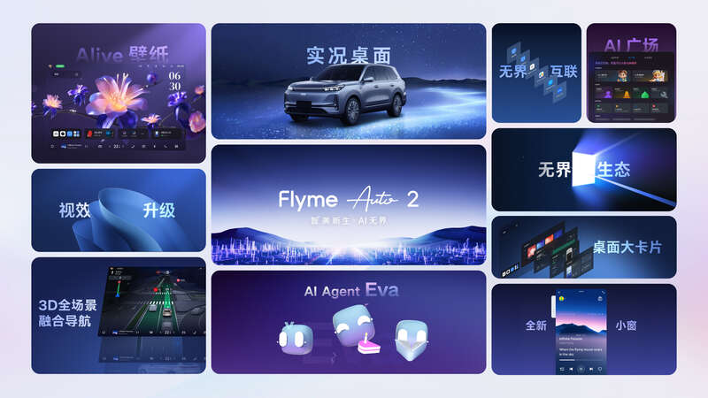 与此同时,基于Flyme Auto 1的成功经验,并融合AI进行全维升级,吉利正式推出了新一代AI座舱操作系统——Flyme Auto 2,真正实现了情感交互、全维沉浸的AI座舱体验,可为用户提供实况桌面、Alive壁纸、桌面大卡片、全新小窗等一系列创新体验。