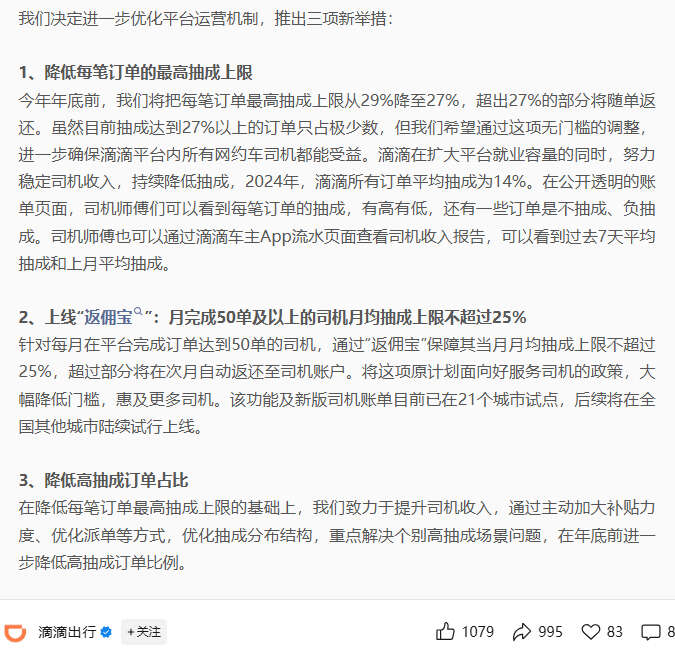 滴滴:三项新举措,多维度降抽成