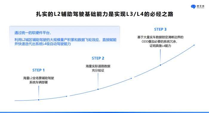 吕鹏认为,无论路线差异如何,行业最终均向L4 顶点迈进。而坚实的 L2 级全场景城区辅助驾驶系统,是实现 L3/L4 的必经之路:需依托统一软硬件平台,通过 L2 规模化量产积累数据飞轮效应,直接赋能并快速迭代 L4 级系统能力,同时推动 L3 高效落地。