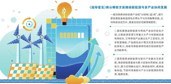 因此,指导意见从加快推动新能源多维度一体化开发、大力推动新能源与多产业协同发展和积极推动新能源多元化非电利用三方面明确实施办法。