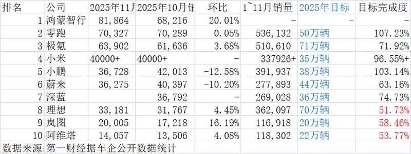 11月新势力销量榜单显示,市场格局在年末冲刺前出现剧烈分化。