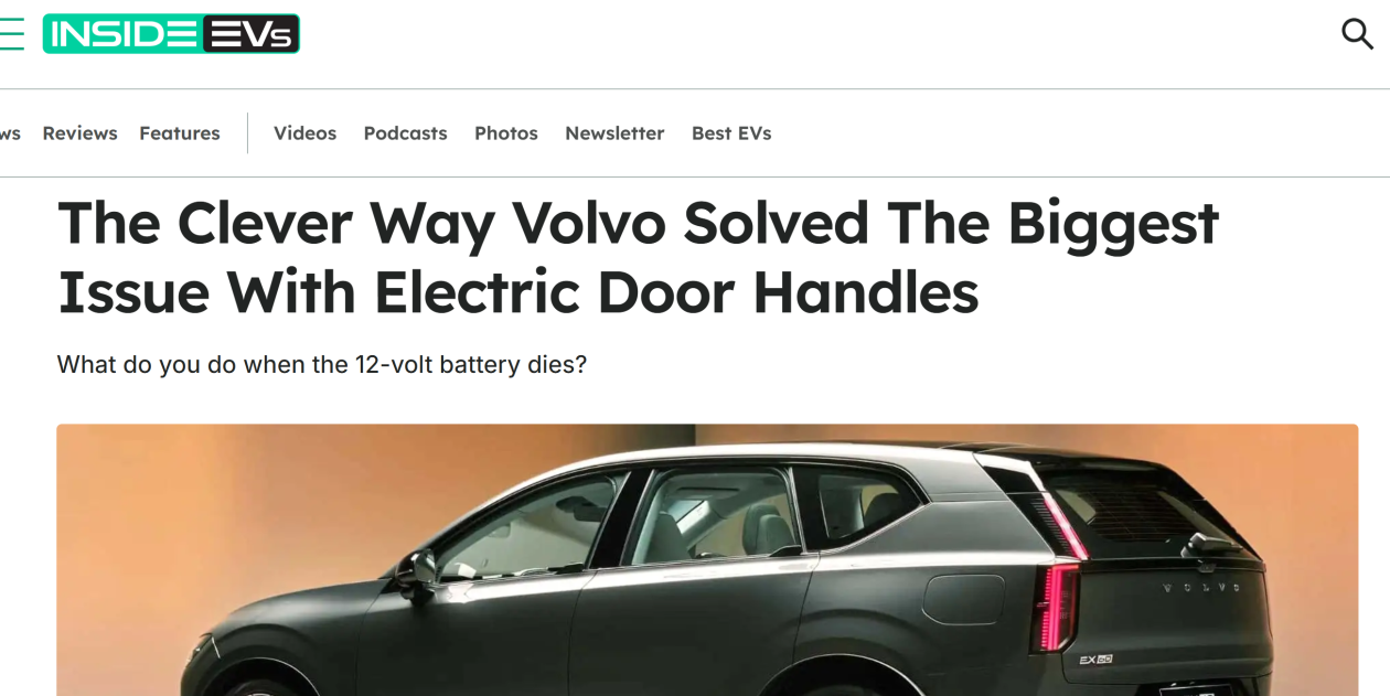 沃尔沃 CTO 详解 EX60 电子门把手:双冗余 + 机械应急
