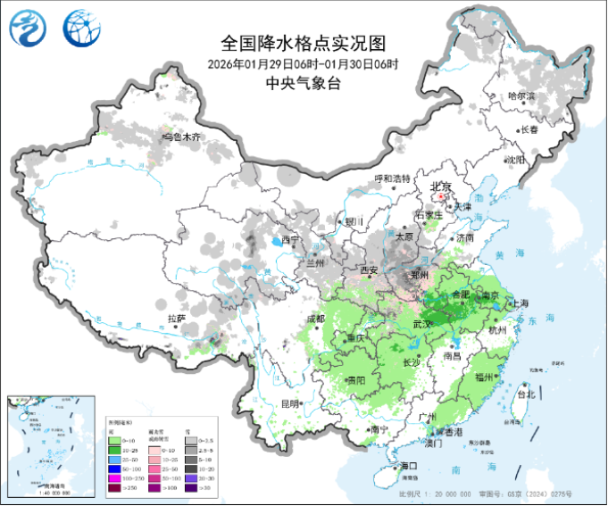中央气象台预计,今明两天(30-31日),雨雪区域将逐渐南压,江苏、安徽、湖北、湖南等地将有小到中雪或雨夹雪,其中高海拔山区局地有冻雨;西南地区东部、江南、华南等地有小到中雨,局地大雨。其中30日雨雪影响范围较广,长江中下游沿线雨雪相态复杂,可能交替出现雨、雨夹雪、雪等降水相态,需重点关注对交通出行、城市运行的不利影响。