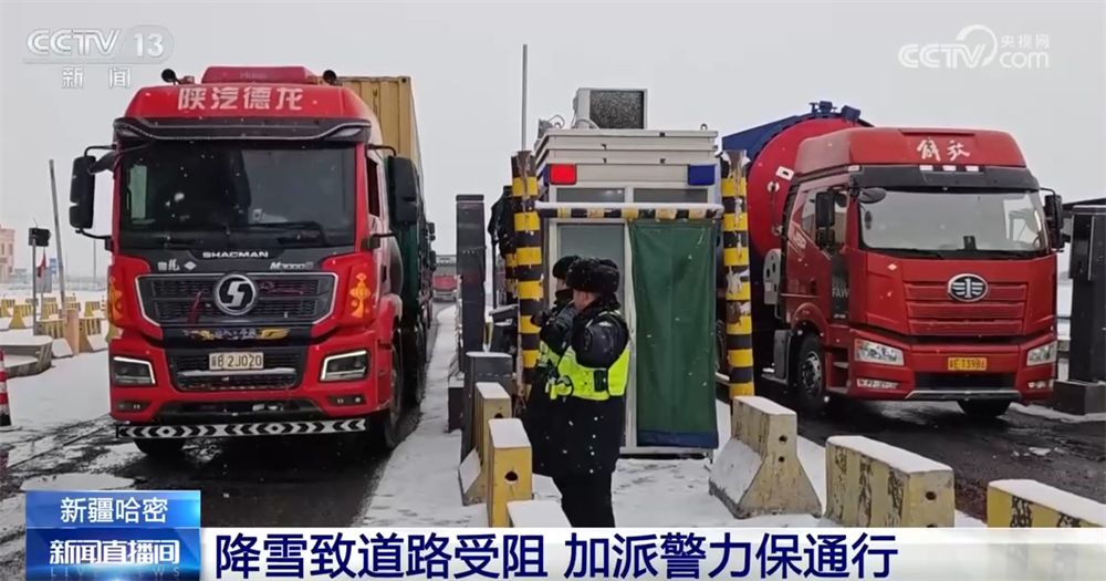 新疆哈密:降雪致道路受阻 加派警力保通行