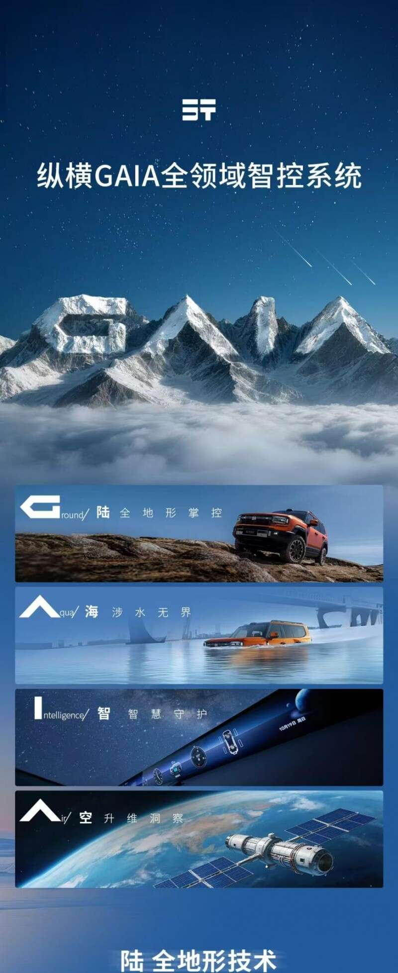 海域能力维度,更是纵横GAIA全领域智控系统的核心突破。通过专属两栖技术、全域防水防护等创新设计,打破传统越野的场景边界,将水域从越野探索的“禁区”变为可深度探索的全新场景,实现了越野领域的跨介质通行突破。