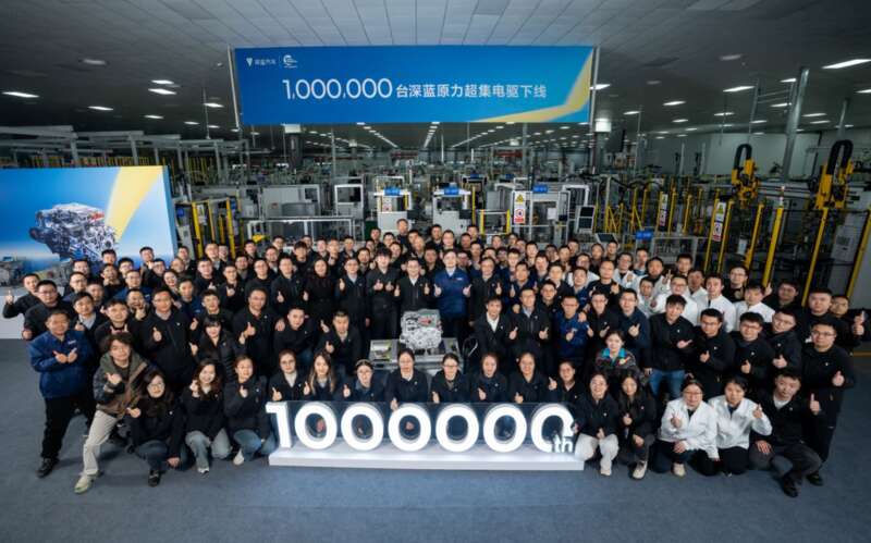 3月27日,深蓝第100万台原力超集电驱下线。深蓝汽车供图