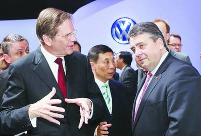 德国副总理兼经济和能源部长加布里尔23日在海兹曼的陪同下参观大众汽车集团展台,共同探讨绿色环保交通。德国大众汽车集团管理董事会成员、大众汽车集团(中国)总裁兼CEO海兹曼认为……