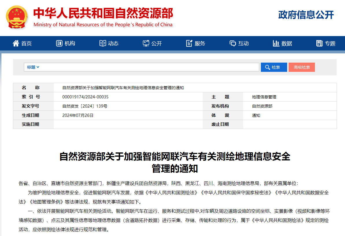 自然资源部:依法开展智能网联汽车相关测绘活动